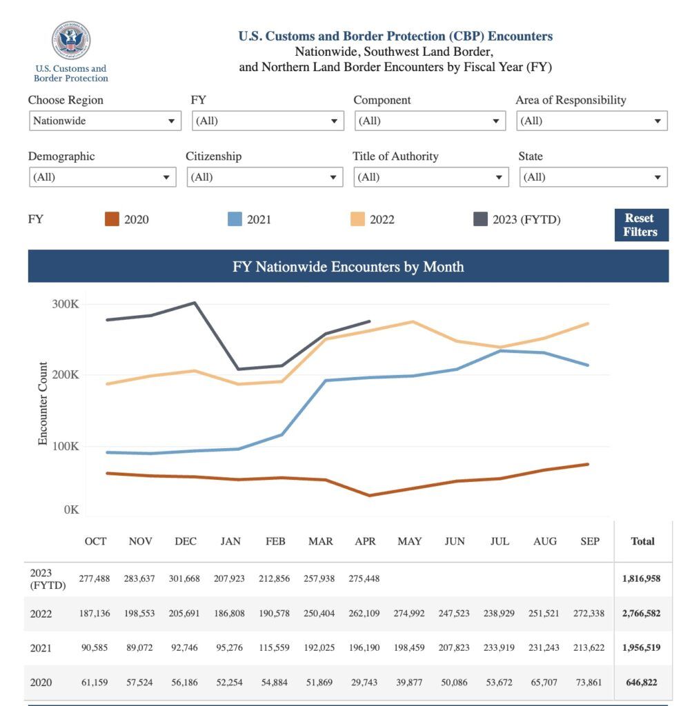 He argues that the number of border crossings seen at the end of Title 42 should not be the standard of comparison, but that the “benchmark” should be 2020.