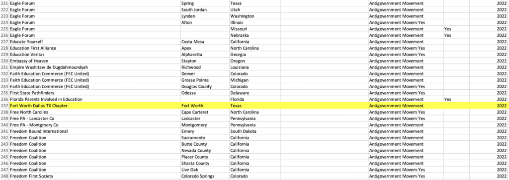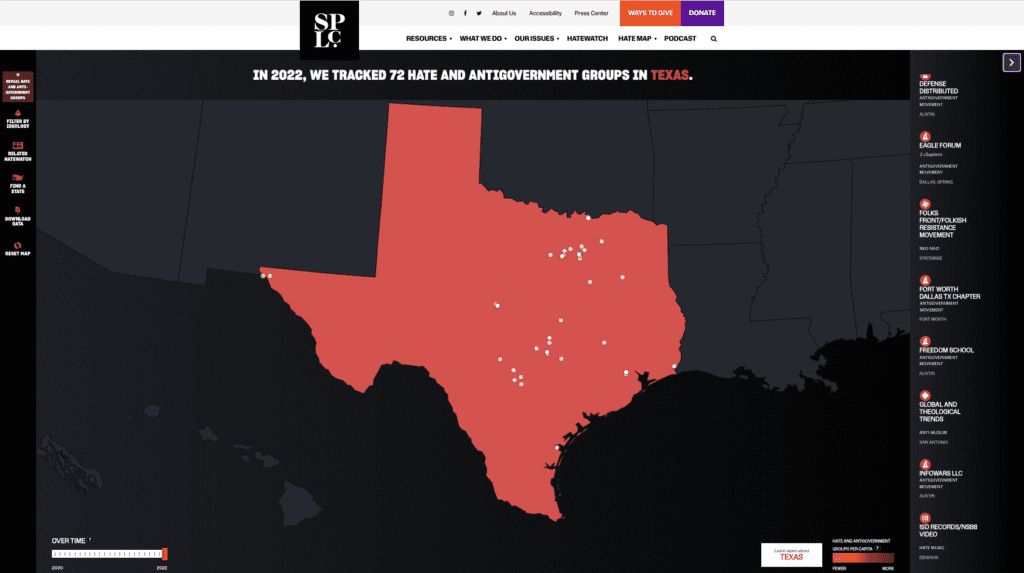 The SPLC usually releases its “hate map” in February or March, but this year, it waited until June. Apparently, that was not enough time to finish copy editing, however, as one organization on the map appears merely as “Fort Worth Chapter.”