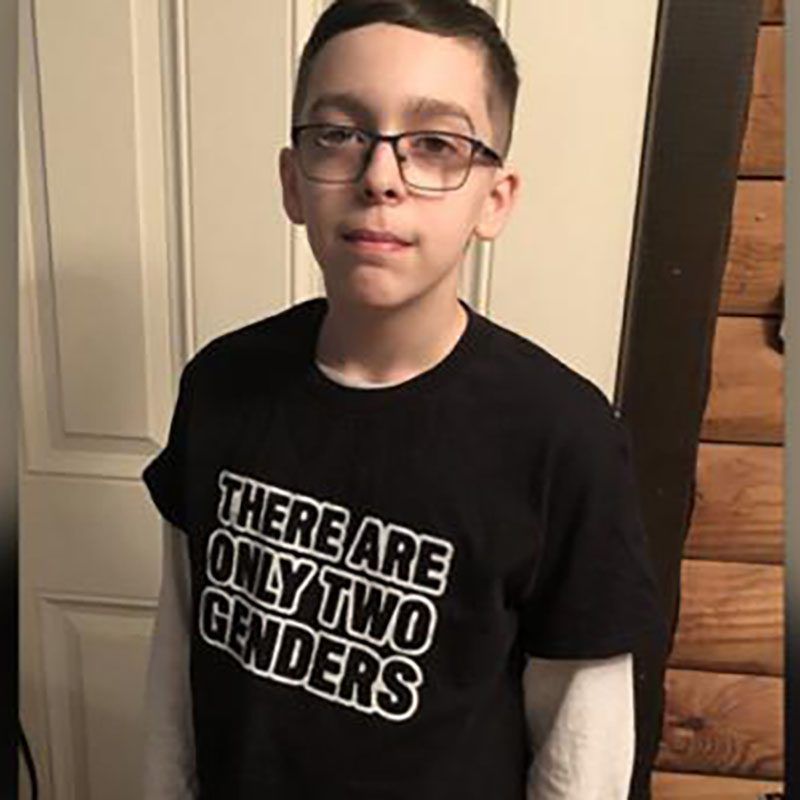 Liam Morrison, a 12-year-old from Massachusetts, was sent home from school for wearing a T-shirt declaring in all capital letters: “THERE ARE ONLY TWO GENDERS.”
