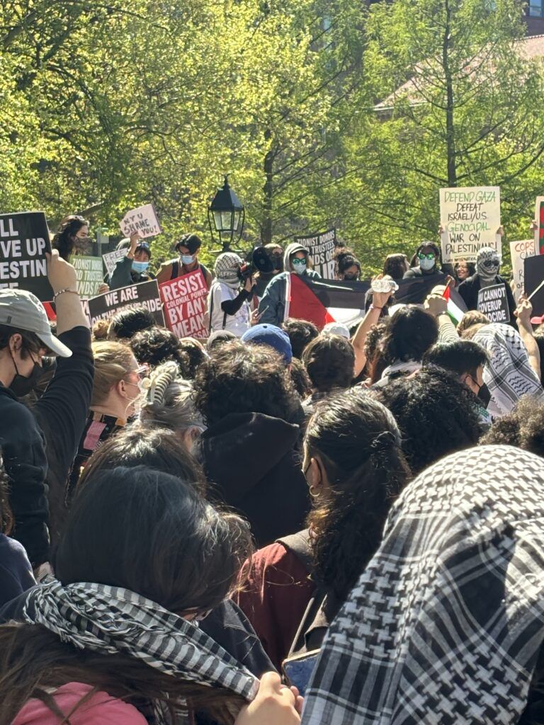 The protesters frequently shouted “from the river to the sea, Palestine will be free.” Typically, the river that refers to is the Jordan River and the sea is the Mediterranean, though the protesters did not name them specifically.
