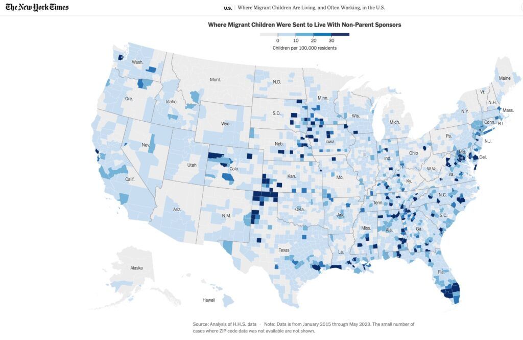 The minors have been released to sponsors across all 50 states and a map created by the Times shows where the children, at least initially, were sent.