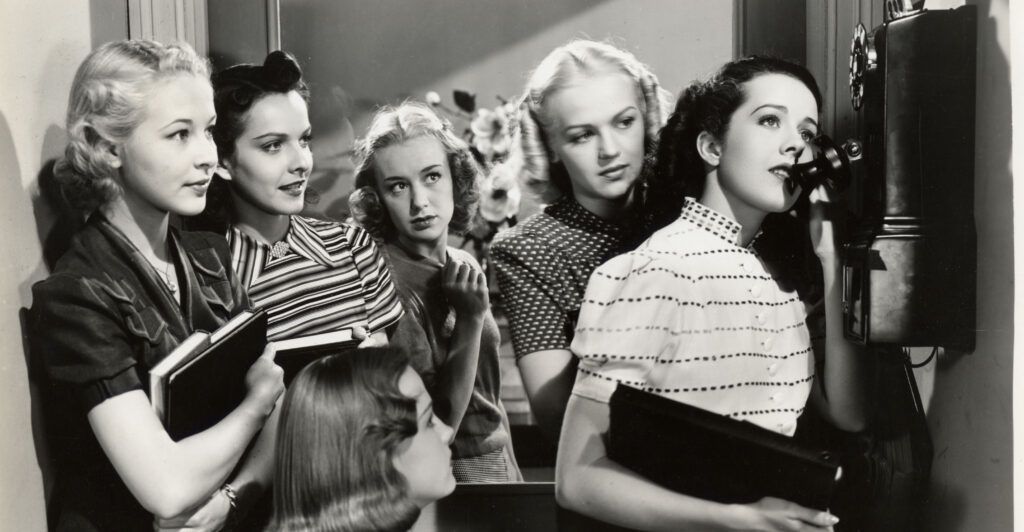 This is what students on the phone at school looked like in 1938, at least according to this scene from the Columbia Pictures film “Girls’ School.” (Photo: Irving Lippman/Vintage Images/Getty Images)