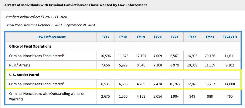 Since the beginning of fiscal year 2024 in October, the Border Patrol has encountered 14,000 “criminal noncitizens” between ports of entry on U.S. borders.