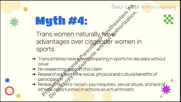 A PPSP teacher training titled “Debunking Myths about Gender-Affirming Care,” “debunks” what it claims to be “myths” about child sex-changes, such as “most people regret having gender-affirming surgery or medical interventions,” “kids are too young to know they’re trans or non binary” and “gender-affirming care is dangerous,” documents show.