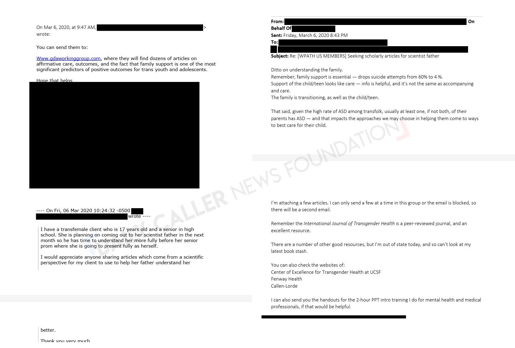 In a Google Group for the World Professional Association of Transgender Health (WPATH), healthcare providers strategized about how to impose radical gender ideology into clinical settings, including methods for coercing parents to accept child sex-change procedures. The Daily Caller News Foundation obtained more than a hundred pages of messages in the group sent in 2020 through a series of public records requests.