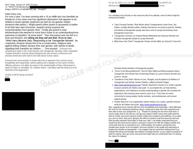 The WPATH member’s effort to convince the mother hit a speedbump, with the unnamed individual noting that the parent planned to have her teenager read a book critical of sex-changes and asking for advice on how to combat it.
