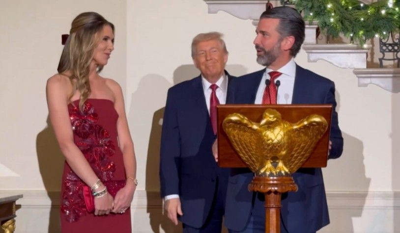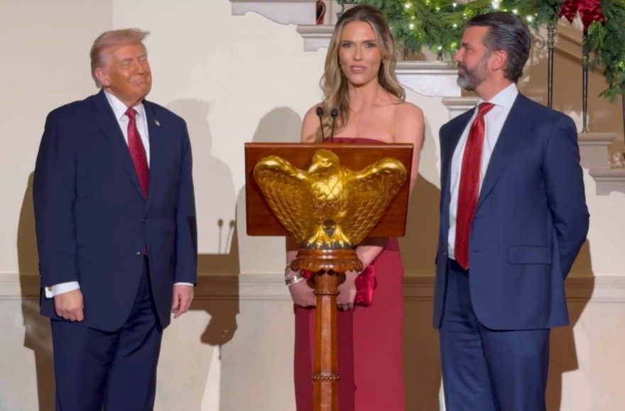 President Donald Trump revealed the engagement Monday night during a Christmas reception, setting the stage for a family moment that felt equal parts old-school glamour and unapologetic confidence.