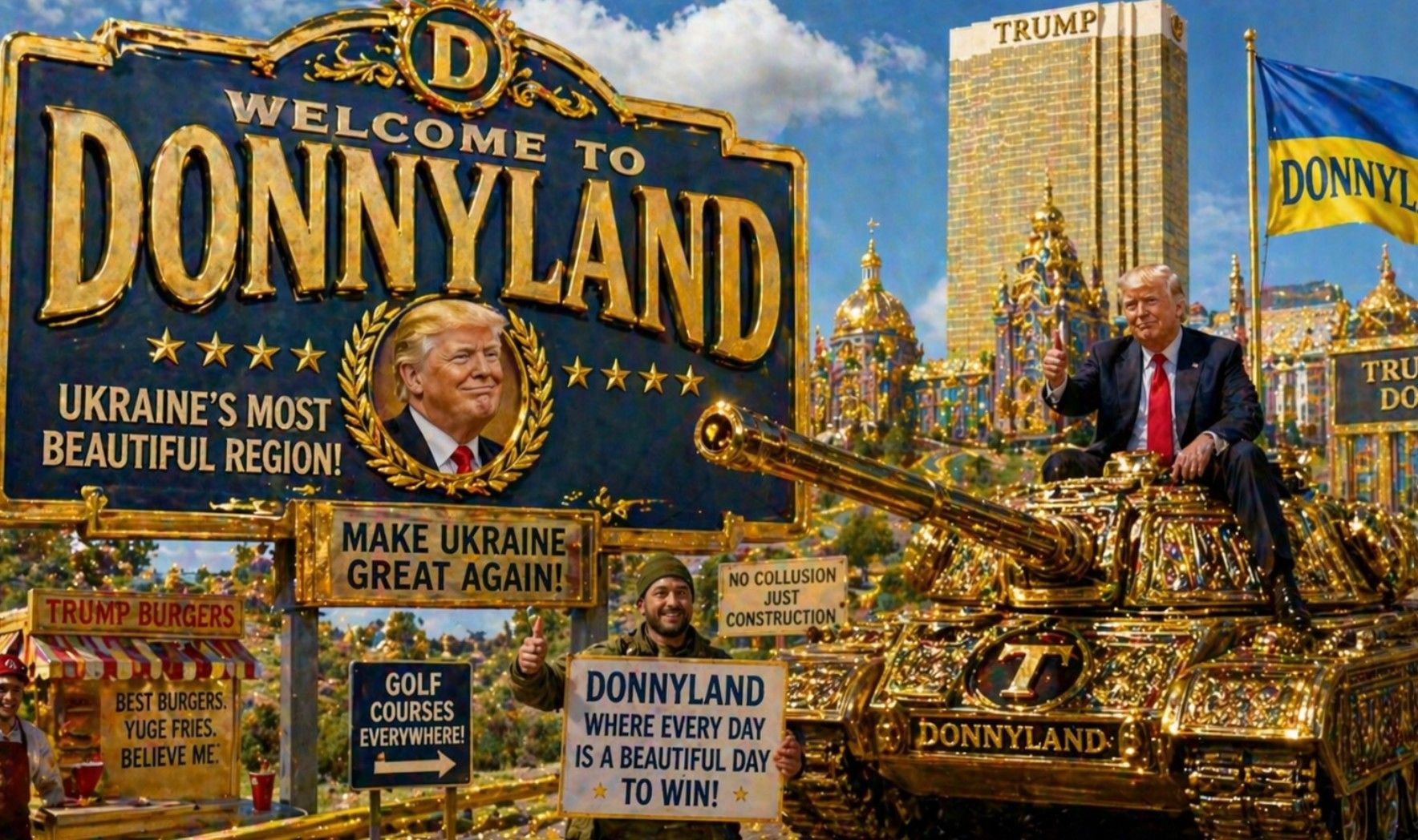 The proposed “Donnyland” would cover roughly a 50-by-40-mile stretch in northeastern Donetsk — not just as a vanity project, but as a geopolitical shield. The thinking is almost cheeky: slap Trump’s name on it, and suddenly any future Russian aggression risks provoking the United States directly. Call it deterrence by ego.